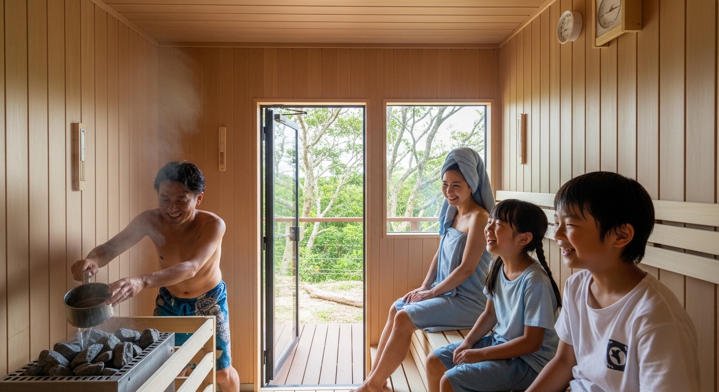 A2. 出発前の1時間を「大人の朝サウナ→家族の朝食」に当てれば、子どもの準備を邪魔せず取り入れやすいです。